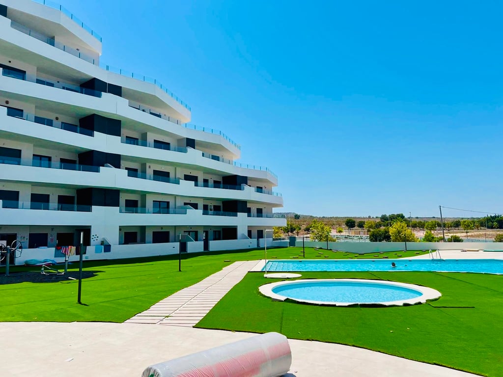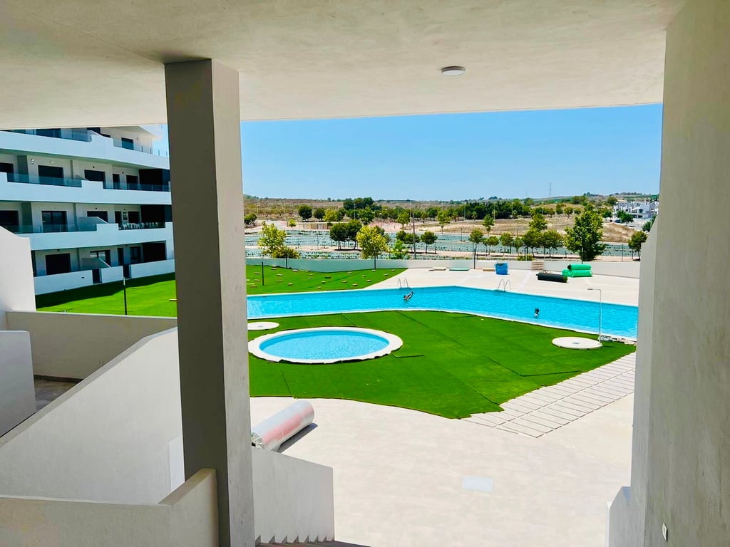 This stylish ground floor apartment offers contemporary living in the sought-after Paradise Resort. Featuring 2 spacious bedrooms and 2 modern bathrooms, the property is sold fully furnished and includes all appliances, ready for immediate use or rental. Enjoy direct access to the communal pool from your private terrace, perfect for outdoor relaxation. The property also comes with an underground parking space for added convenience. Located just a 5-minute walk from the centre of Sa...