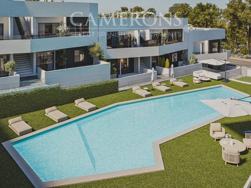 Residential complex consisting of 108 semi-detached homes, bungalow-style with 2 and 3 bedrooms, distributed on ground floors with gardens or upper floors with private solariums. This fully gated community features communal pools and green areas. Located in San Miguel de Salinas, near golf courses and shopping centres.Features include: Fully furnished kitchen with filter unit and induction hob. Armored access door with panoramic peephole. Porcelain floors. Compact blinds. White laminated wardro...