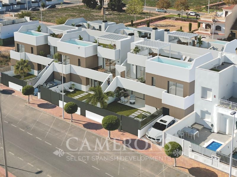 Alma Bungalows is an exclusive project of two-bedroom penthouses and ground-floor residences, each crafted with designer precision and finished with a private pool.Set in the heart of San Pedro del Pinatar, just five minutes walk from the beach, Alma Bungalows offers a lifestyle that’s refined yet relaxed — Ibiza-inspired, Mediterranean-rooted and truly boutique.Choose your style: a ground-floor bungalow with a flow, straight to your terrace and private pool, or a penthouse with large rooftop so...