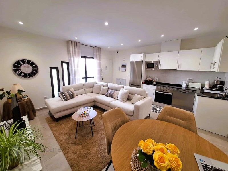 In a quiet residential area of Lo Pagan, is this well-kept ground floor flat with west facing outdoor space and access to a communal swimming pool. It is only 400 metres from the beach and the lively town centre, ideal for those who want to enjoy the Spanish outdoor life. A pleasant place where tranquillity and accessibility go hand in hand.A good place to spend the winter or to rent out - the tourist licence is already in place.INTERIOR:- Constructed area: 95 m2 approx.- 2 bedrooms and 2 bathro...