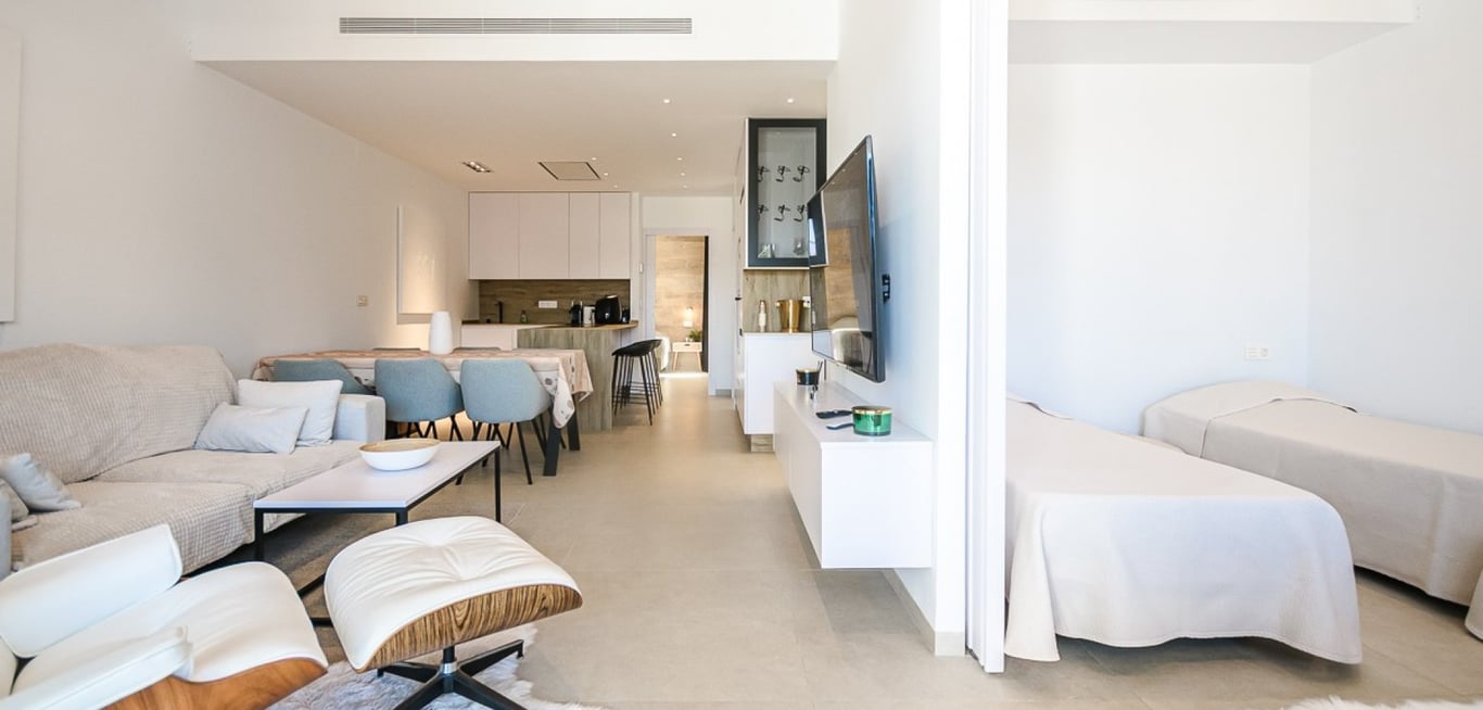KEY READY ALL IN new 3 bedroom groundfloor bungalow from 2022! Located on walking distance of San Pedro Del Pinatar Center. 50 meters from the supermarket and restaurants We are very please to present you this wonderful ALL-IN and KEY READY ground floor apartment in San Pedro Del Pinatar, Murcia. Nestled in the charming coastal town of San Pedro Del Pinatar, this new ground floor bungalow apartment epitomizes a lifestyle of convenience and luxury. Situated within a short walk from essen...