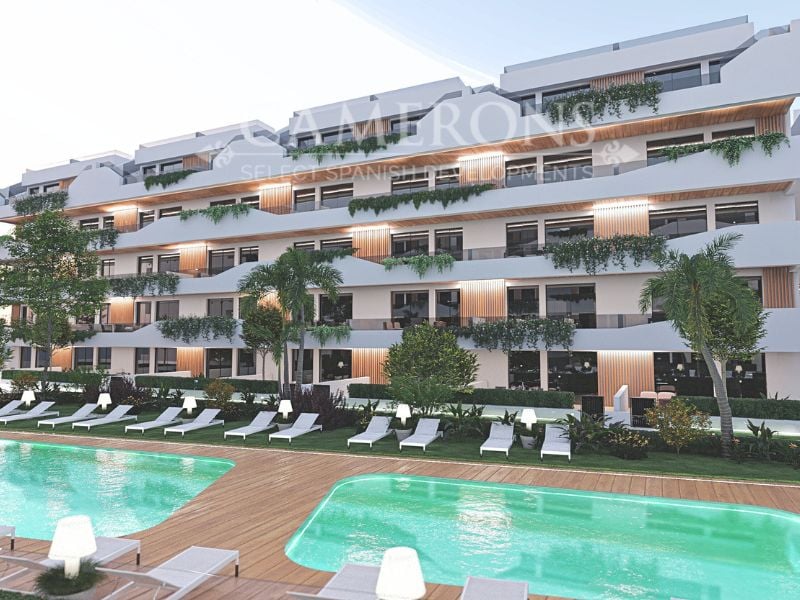 This tourist residential complex comprises 125 apartments located just 800 metres from the Mar Menor.The development features two swimming pools and extensive landscaped areas designed for relaxation and enjoyment of its residents.Bright and fully equipped homes.The homes offer 3 bedrooms and 2 bathrooms and come in various types: Ground floor with private garden First floor with a spacious intermediate terrace Penthouse with private rooftop terrace Thanks to the tourist licence already granted,...