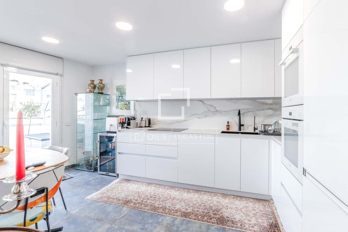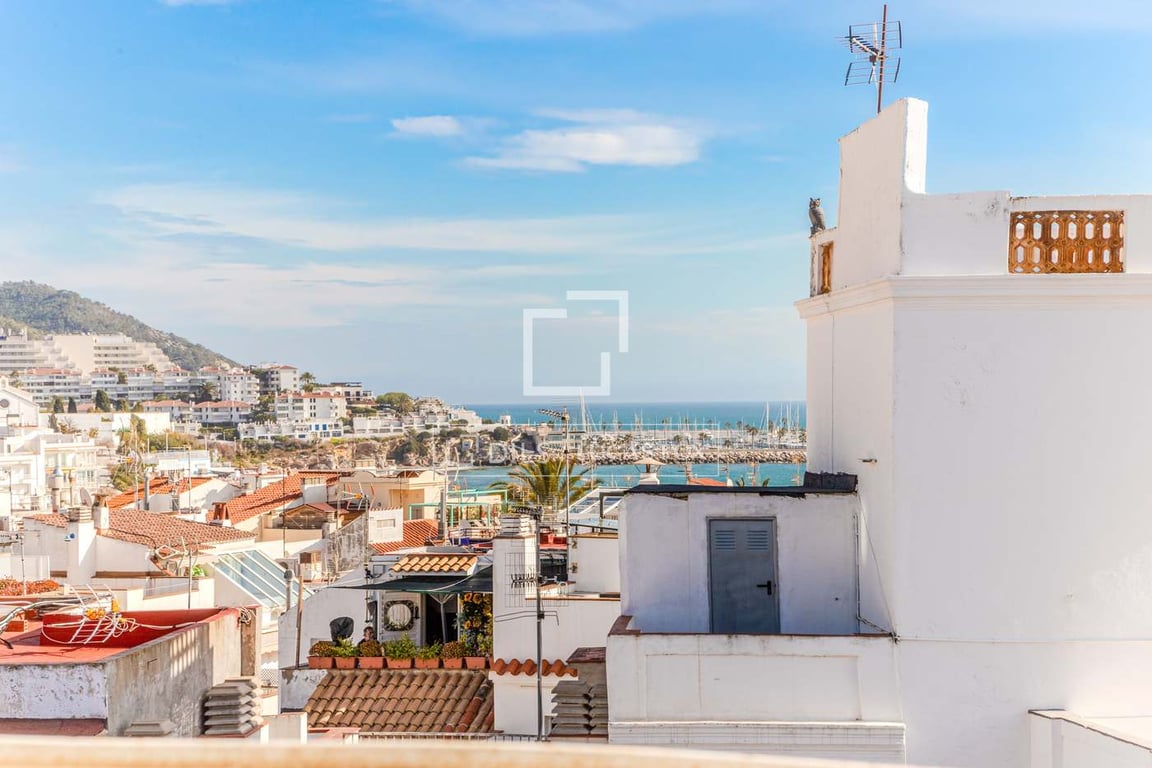 This spectacular duplex penthouse is situated in the heart of Sitges, on a quiet semi-pedestrian street, offering an unbeatable location just moments from all essential services, including restaurants, cafés, supermarkets, a medical centre, and only two minutes walk from the beach. The building is home to an exclusive small community, and features direct access to the car park next to the main entrance. A wide white marble staircase and lift that leads up to the elegant duplex penthouse. Upo...