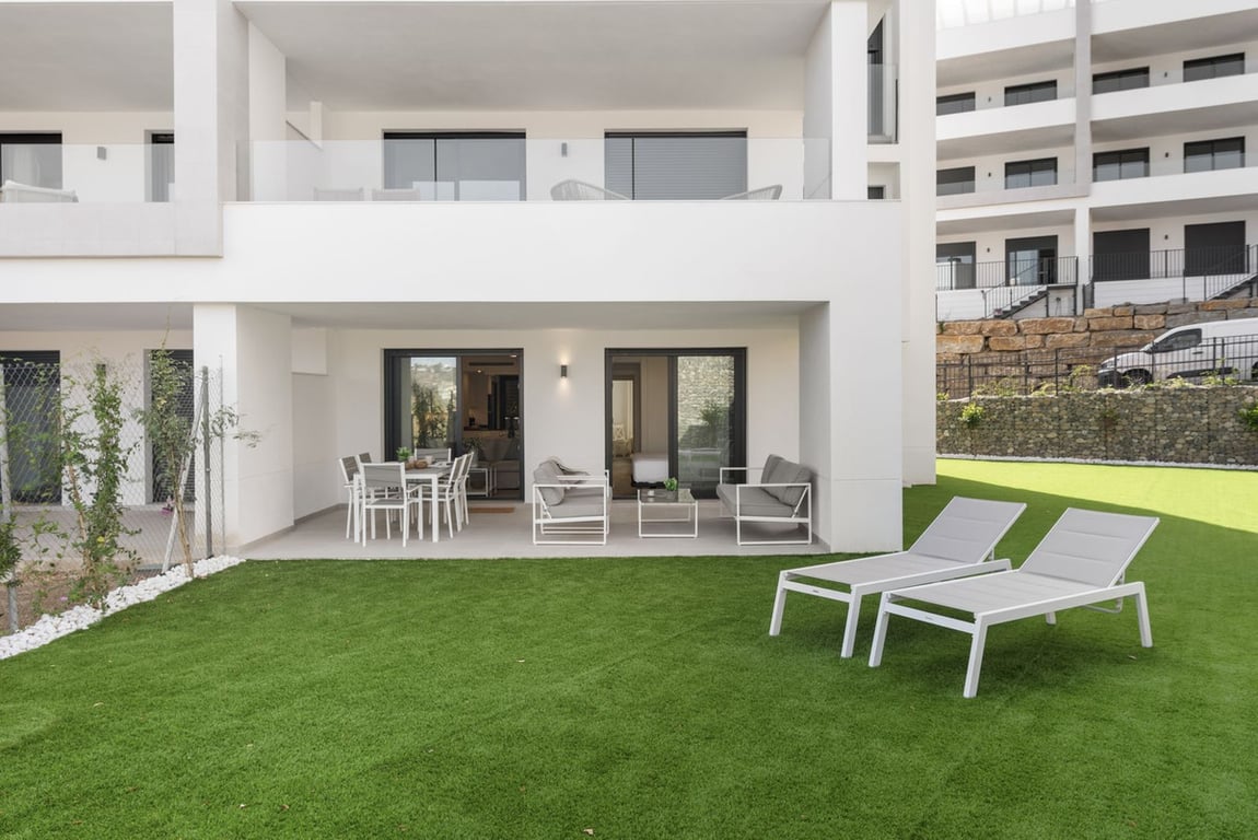 Charming 3-Bedroom Apartment in La Cala de Mijas. Welcome to this bright and elegant 3-bedroom apartment, thoughtfully designed to offer comfort, space, and relaxation in a beautiful setting on the Costa del Sol. The spacious living room opens onto a large private terrace with a dining area and a cozy lounge set, perfect for unwinding after a day of exploring. From the terrace, you have direct access to a lovely garden where you can enjoy peaceful surroundings and outdoor living. Also have acces...