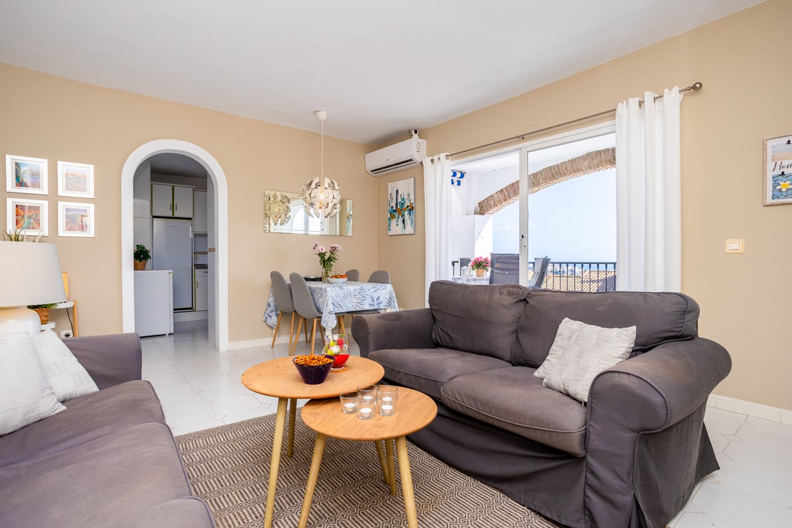 Located in the sought after mid-upper area of Calahonda, this charming two-bedroom apartment enjoys beautiful sea views and a peaceful natural setting. Upon entering, you are welcomed by a hallway leading into a bright and spacious lounge filled with natural light and offering lovely sea views. The property features an independent fully fitted kitchen and an ample terrace overlooking the communal swimming pool and the Mediterranean Sea, the perfect space for relaxing or dining outdoors. There ar...