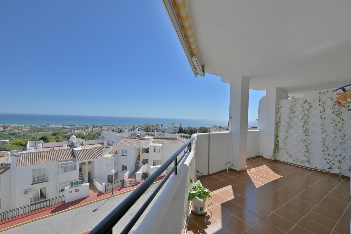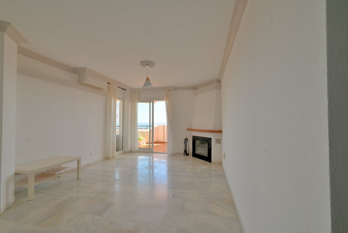 Located in the sought-after upper area of Calahonda, this beautiful two bedroom apartment offers breathtaking panoramic sea views and a bright, spacious layout throughout. The property comprises two double bedrooms, with the master bedroom benefiting from an en-suite bathroom, while a separate guest bathroom serves the second bedroom. A fully fitted kitchen with an adjoining utility room adds practicality, while the bright and airy living room features a cosy fireplace and direct access to a sun...