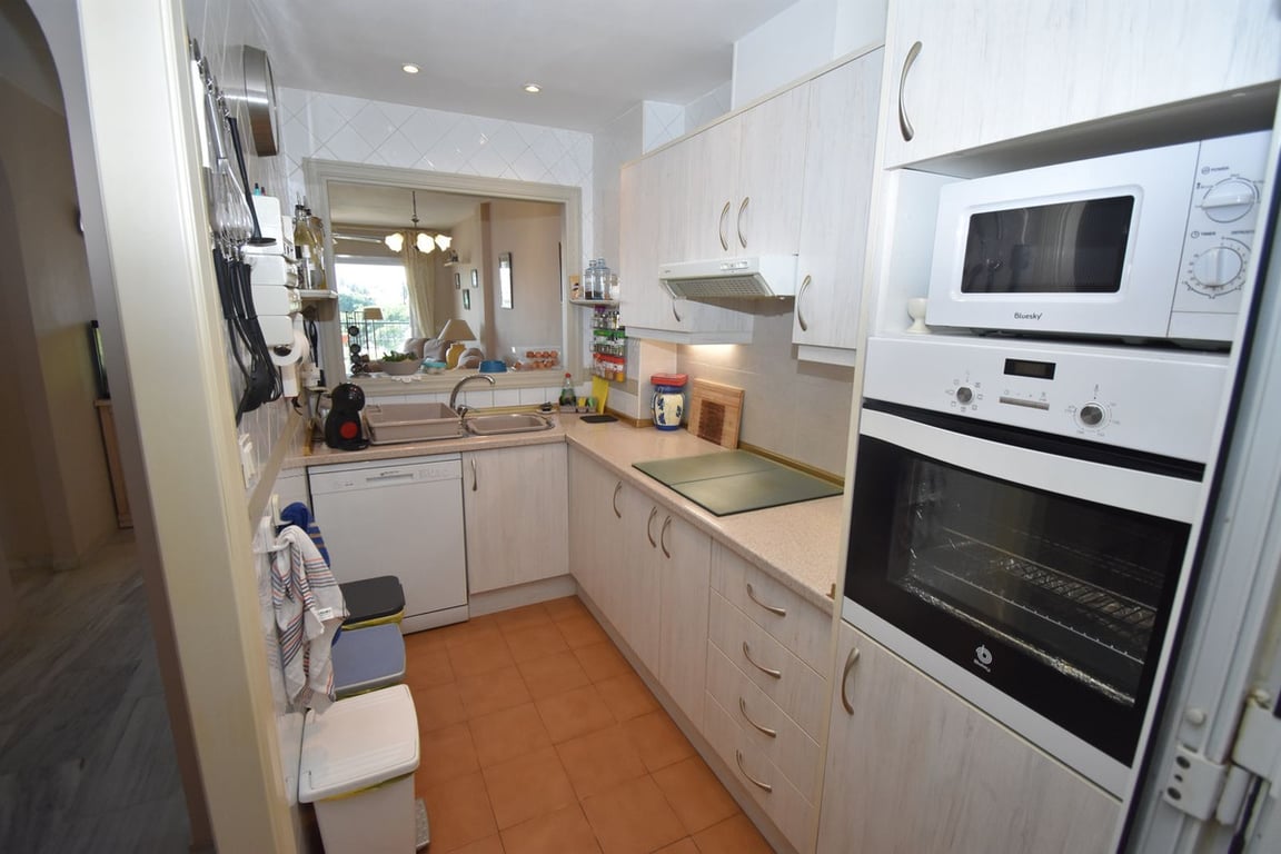 STUNNING 2 BEDROOM, 2 BATHROOM APARTMENT WITHIN EASY WALKING DISTANCE TO THE BEAUTIFUL BEACHES & AMENITIES!! TRULY MUST BE SEEN TO BE APPRECIATED! On entrance, hallway to the spacious bright living & dining room which opens out to the superb terrace, perfect for dining and enjoying the views! The kitchen is fully fitted with all white goods plus there is a utility room adjacent. The 2 bedrooms are all double with views and the Master leads out to the private sunny terrace. The main bedroom also...