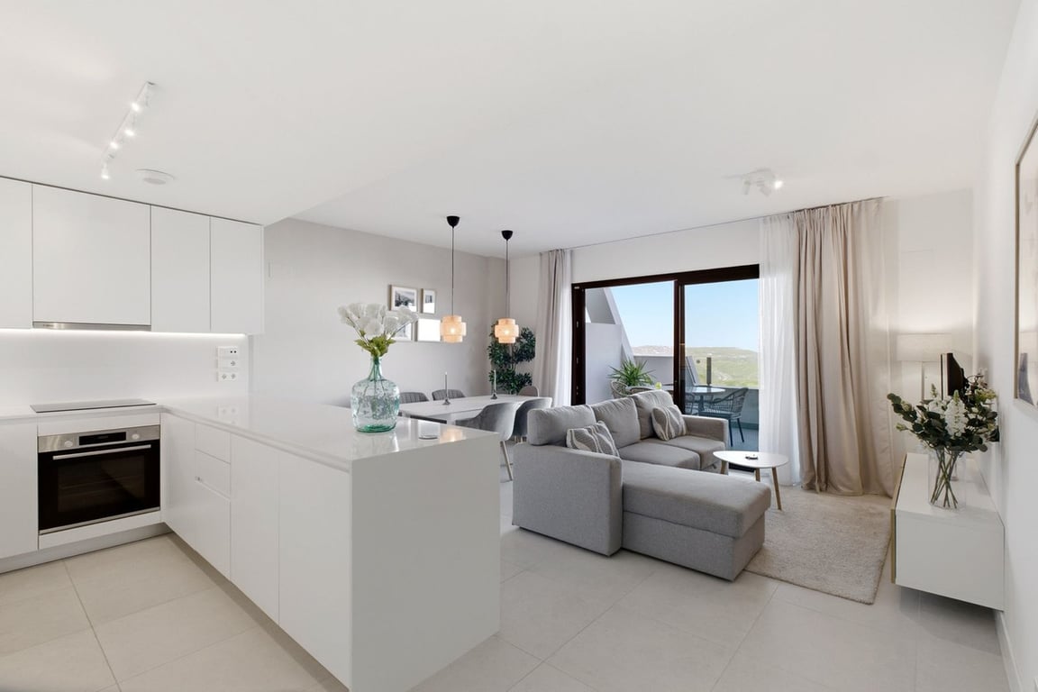 Modern 2-Bedroom Apartment in Calanova Golf Beautifully presented 2-bedroom, 2-bathroom ground floor apartment located in a prestigious gated community in La Cala Golf, with stunning panoramic views over Calanova Golf, the mountains, and surrounding greenery. The property offers a bright open-plan living space with a modern fully fitted kitchen, seamlessly connected to the lounge area. Large sliding doors lead directly onto a spacious terrace, ideal for relaxing or entertaining while enjoying t...