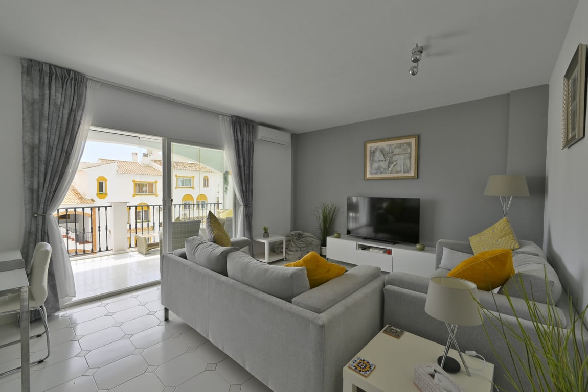 A wonderful two bedroom apartment with two bathrooms , in excellent condition and ready to move in to!! Located in the middle area of Calahonda , near to the Club del Sol tennis club and La Siesta Golf club house. Comprises of a bright and airy lounge ,a nice fully fitted kitchen with a breakfast bar , a spacious and sunny south facing terrace with partial sea views and glass curtains which a perfect for the winter months. There are two double bedrooms with nice views of the green woodland and h...