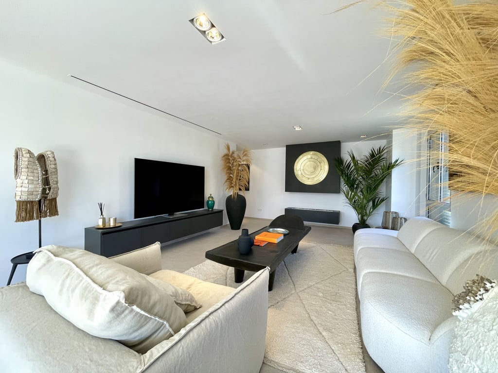 This stunning three-bedroom apartment is located in the highly desirable Ribera de la Romana residential complex in Sotogrande Marina, within walking distance of the port, with its many restaurants, boutique shops, and the Sotogrande beach. Completely renovated with meticulous attention to detail, the apartment offers 211 m2 of spacious, open-plan living with exceptional finishes. The bright entrance hall leads to a generous living area, centred around a stylish oil fireplace. Beyond, a furthe...