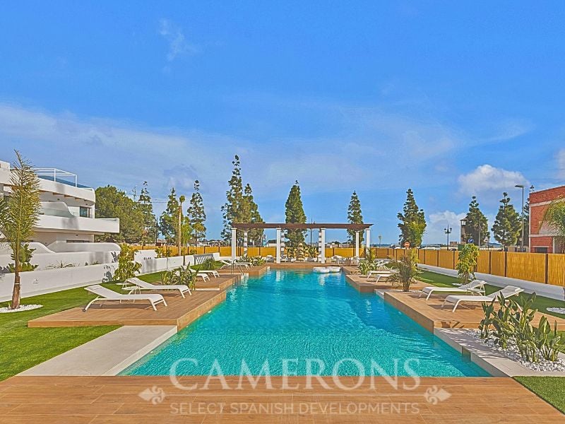 We are pleased to offer you this fantastic complex, L.A SUNSET, located in Los Alcazares, combining apartments and villas in a single project.The apartments share a carefully designed communal area, open to the sunset and the golf course.The villas stand on their own, with private pools and direct views over the golf course.The residential is composed of 46 apartments of 2 and 3 bedrooms and 8 villas, combining modern design, quality and functionality. The unbeatable location offers nice views ...