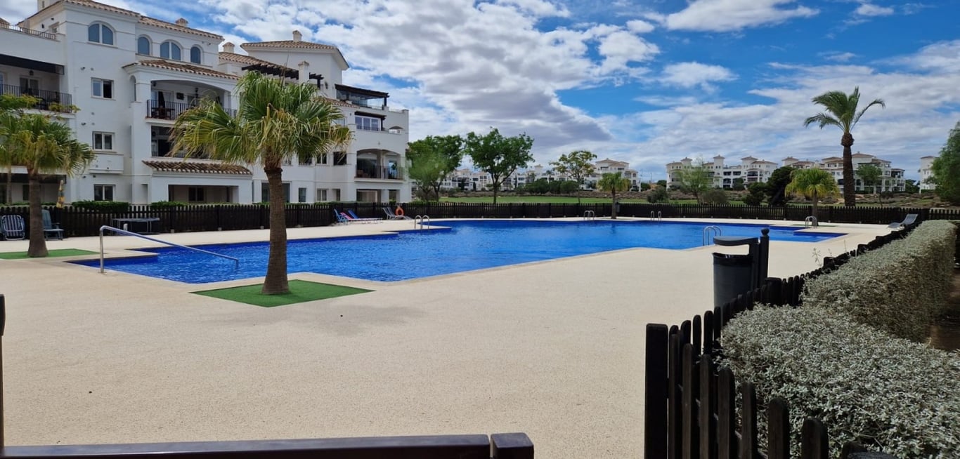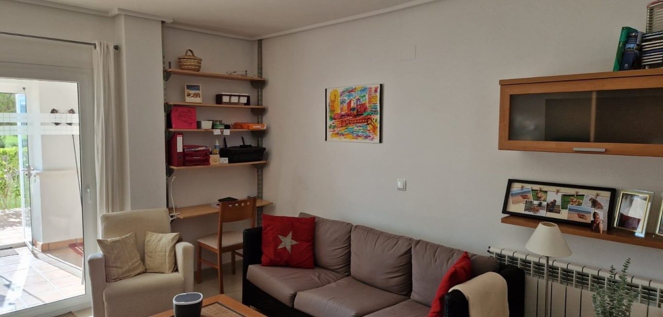 Ground Floor Apartment in Hacienda Riquelme Golf Resort We present this beautiful ground floor apartment with 2 bedrooms, located in the prestigious Hacienda Riquelme Golf Resort.The property features: 2 terraces: one covered and one open-air, perfect for enjoying the sun and the views Excellent general condition and stunning views of the golf course Fully furnished and ready to move in The residential complex is fully gated with 24-hour security, offering peace of mind and a safe environme...