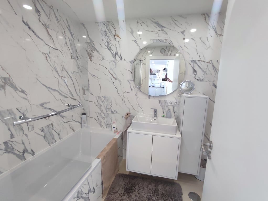 This well presented 2 bedroom, 1 bathroom, modern apartment set on the first floor and has large overlapping sliding doors that lead to the terrace creating a light, bright and spacious additional living area. It has a very sunny south west facing terrace with glass curtains and awing providing the perfect environment for all round holidaying or permanent living. The property has been updated and modernised that include an open planned kitchen, air-conditioning throughout, white doors and frames...