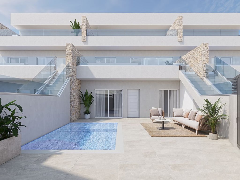Rambla y Mar is an exclusive new build residential complex in Pilar de la Horadada, which offers maisonettes with private pool just 2.5 km from the beach. This development offers 3 bedroom and 2 bathroom ground floor maisonettes with private pool, garden and private parking, 2 bedroom and 2 bathrooms top floor maisonettes with large open terrace with pool and one townhouse with 3 bedrooms and 2 bathrooms in a corner plot. All properties have private swimming pool. The development is in an...