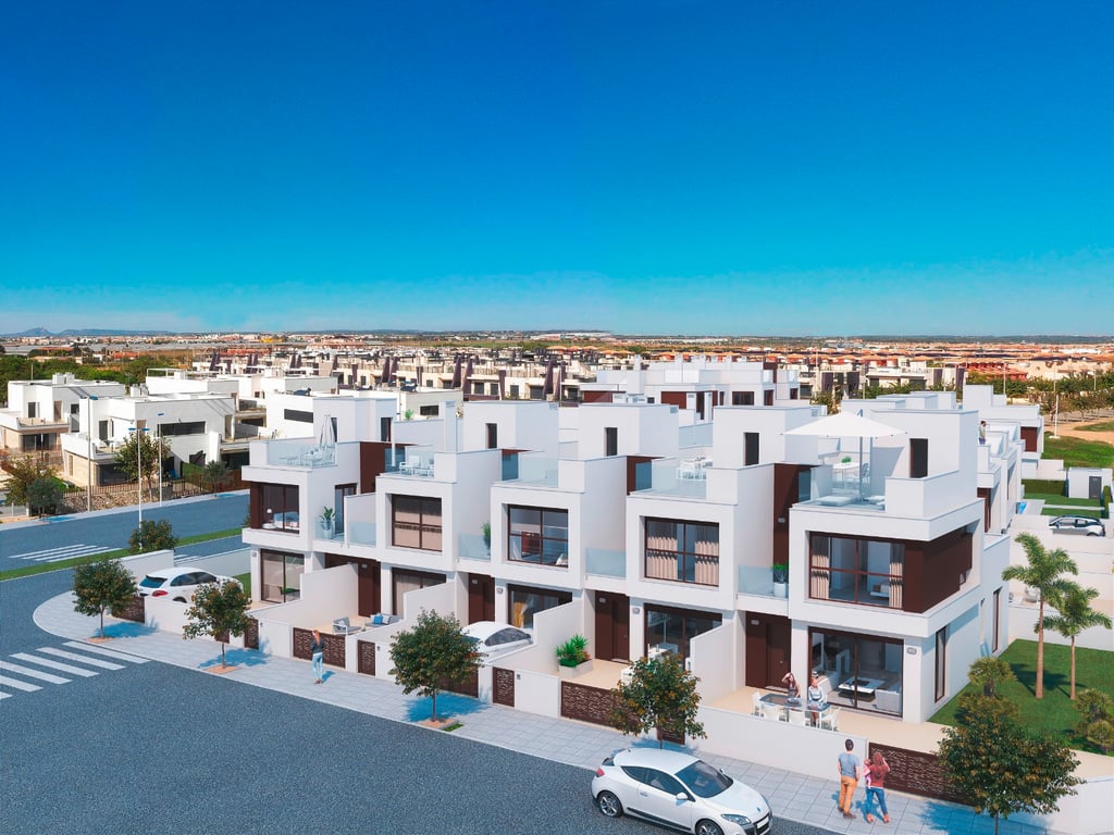 This development is located only 150 meters from the long sandy beaches of La Torre de la Horadada. There is a selection of properties from duplex style properties to Townhouses and all of them come with underfloor heating in the bathrooms, white goods in the kitchens, electric shutters and pre installation of A/C. The location of this development is ideal due to the closeness of the beaches but it is also has supermarkets and restaurants close by plus the busy towns of San Pedro del Pinatar & P...