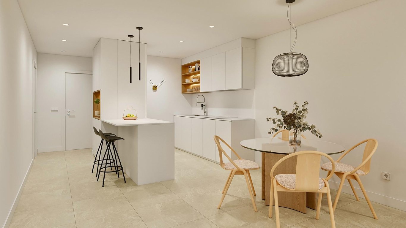 Really good layout. Good size rooms. Terraces on both sides of the apartment. 90 m2 communal pool with sunbeds area and toilet facilities. Parking on own plot. Communal covered parking area for bi-cycles including e-charging. Also solar panels for the communal use.~~Entrance to the hallway from front garden/parking area.~~From the hallway is acces to one of the bedrooms, one of the toilet and the quite good size lounge with open kitchen. Kitchen got a nice breakfast bar. From the lounge is also ...