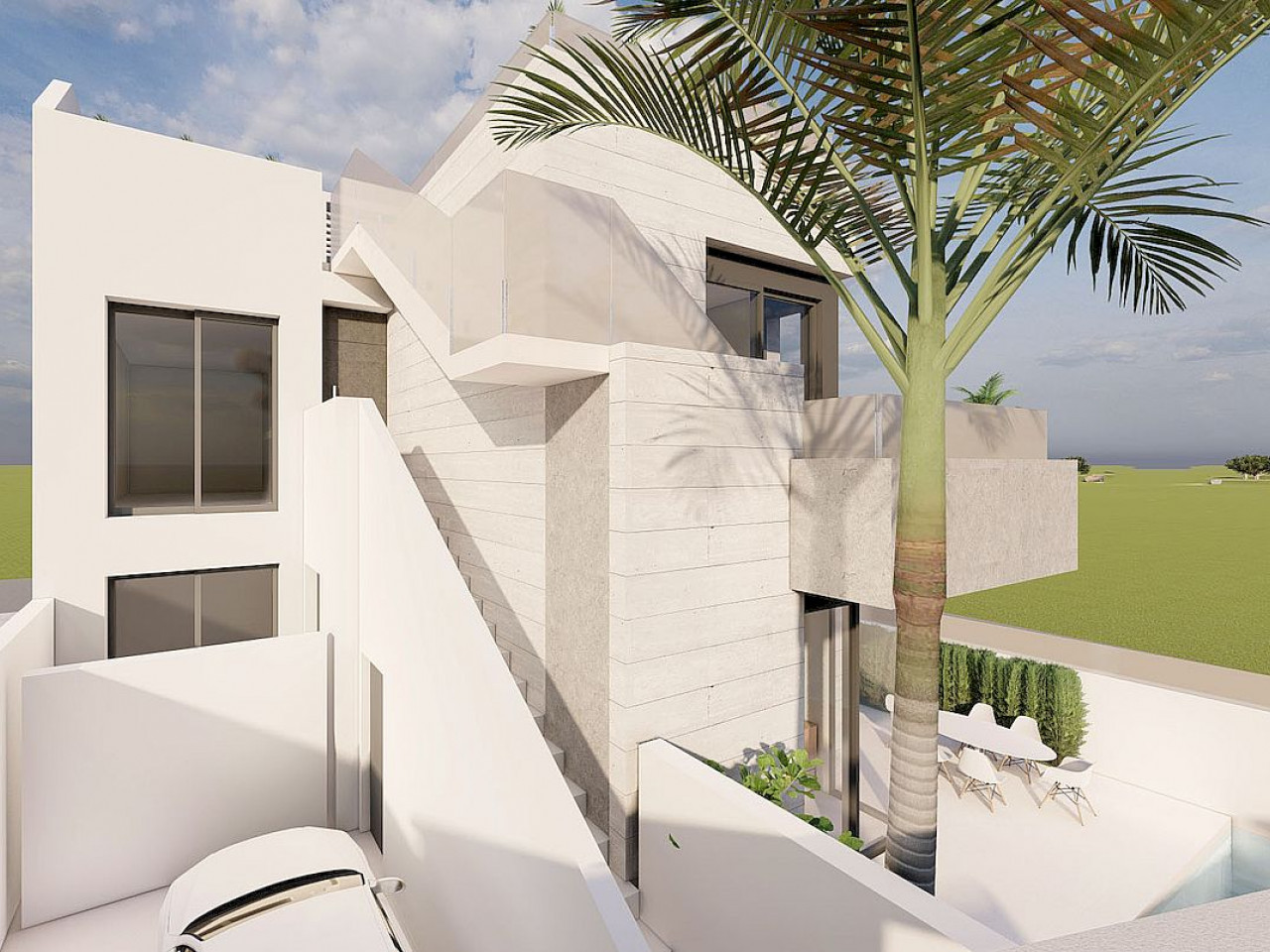New project with high quality south orientation Maisonettes with private pool located in center of Pilar de la Horadada. Choose between ground-floor maisonette with spacious terrace or first-floor unit boasting private terrace and solarium, with two bedrooms with fitted wardrobes and two contemporary-style bathrooms (one en-suite). In addition it offers private pool, gated parking and garden on the ground floor. The top floor maisonette includes a solarium with sea views and private pool, ...