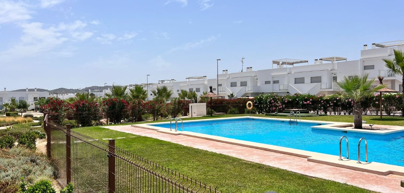 This beautifully maintained first floor apartment offers 55 m2 of bright, open living space in excellent condition. It has 1 spacious bedroom with fitted wardrobe and 1 modern bathroom. The property also has a fully equipped open kitchen, air conditioning and is fully furnished, the linnen and all kitchen utensils stay and is therefore ready to move in. Enjoy outdoor living with two private terraces – one north facing and one south facing – perfect for sun or shade at any time of day. There ...
