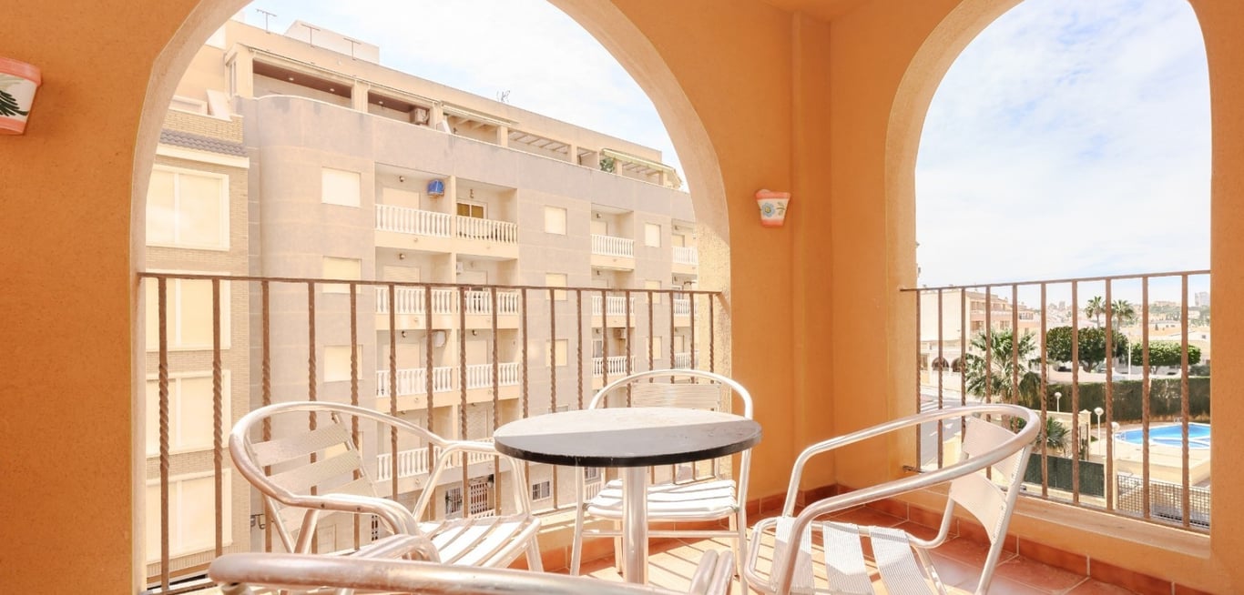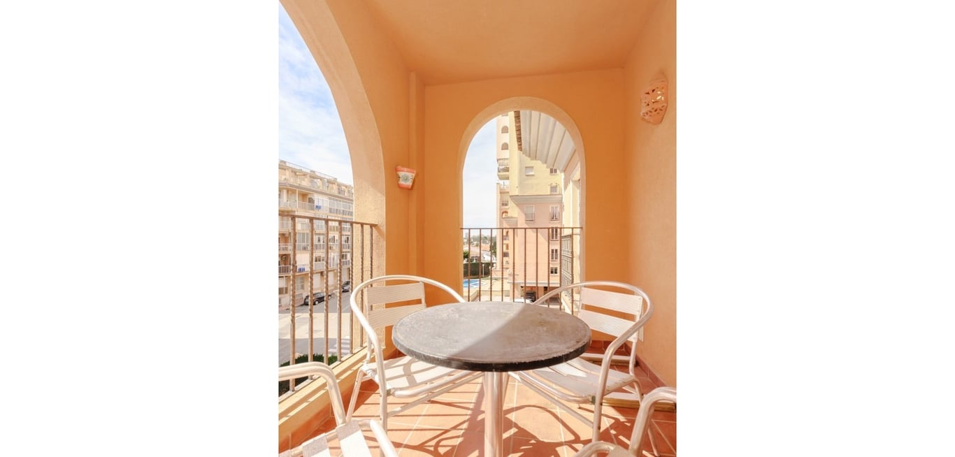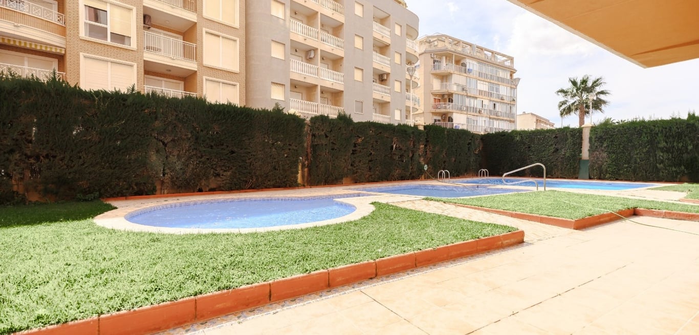 Welcome to this beautiful architectural building and street in Torrevieja, where we are pleased to present a three-bedroom apartment overlooking the pool area and just 150 meters from Playa de los Locos. Key features: 2 spacious bedrooms: A master bedroom with en-suite bathroom and a bedroom with bunk beds. Kitchen: Equipped with appliances. Living room: Spacious lounge with sofa, stereo cabinet, and TV. Includes a large dining area. Bathrooms: Two spacious bathrooms, one with...