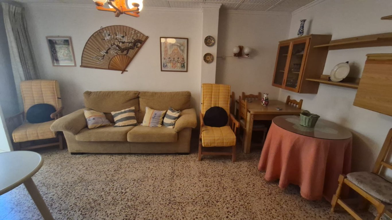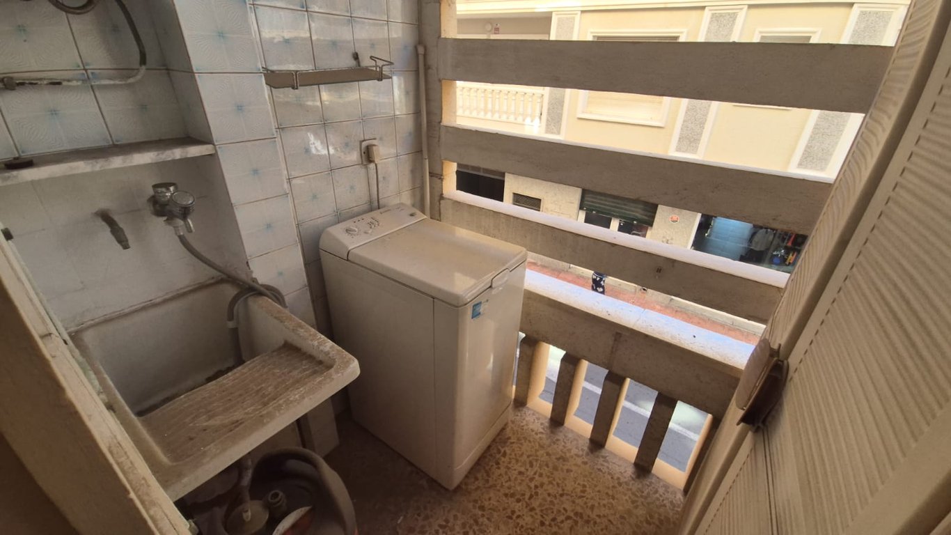 Ideally localted 3 bedroom first floor apartment in a block with lift second line beach in Torrevieja in Playa del Cura. The property is located a very short walk from the town center with all facilites at door step. The property is a first floor apartment with a nice size terrace, 3 bedroom, 1 full bathroom, kithcne with utility and a nice size lounge with access to the terrace. The property comes fully furnished and ready to move in.