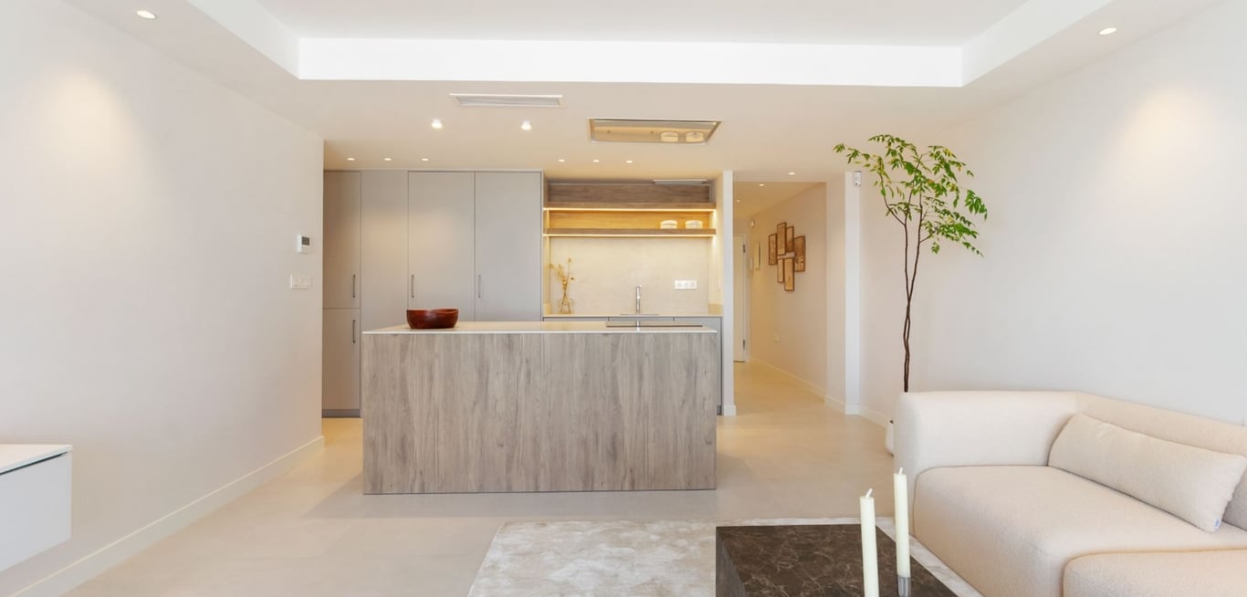 Welcome to this tastefully renovated apartment on the 7th floor of the popular Navamares complex, located right on the beachfront in the heart of Torrevieja. This bright and modern home offers 3 bedrooms and 3 bathrooms, along with lovely views of the sea, the marina, and the town. The apartment has been completely renovated in an elegant and welcoming style and is sold fully furnished, including modern furniture, appliances, and air conditioning – ready to move into! The Navamares complex is we...