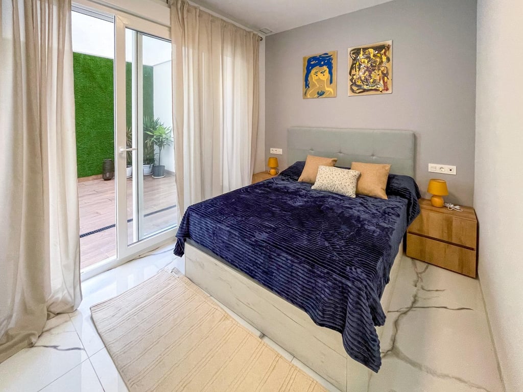 100 m2 refurbished ground-floor apartment with 2 bedrooms, 2 bathrooms and an enclosed terrace. Just a short walk from Playa del Cura and close to all central services. Includes an equipped American kitchen, air conditioning and is sold fully furnished. An identical unit, modernised in the same way and with the same layout, is also available under Ref. SCS00024 — a rare opportunity to acquire two matching apartments. Ideal for rental income or year-round living.