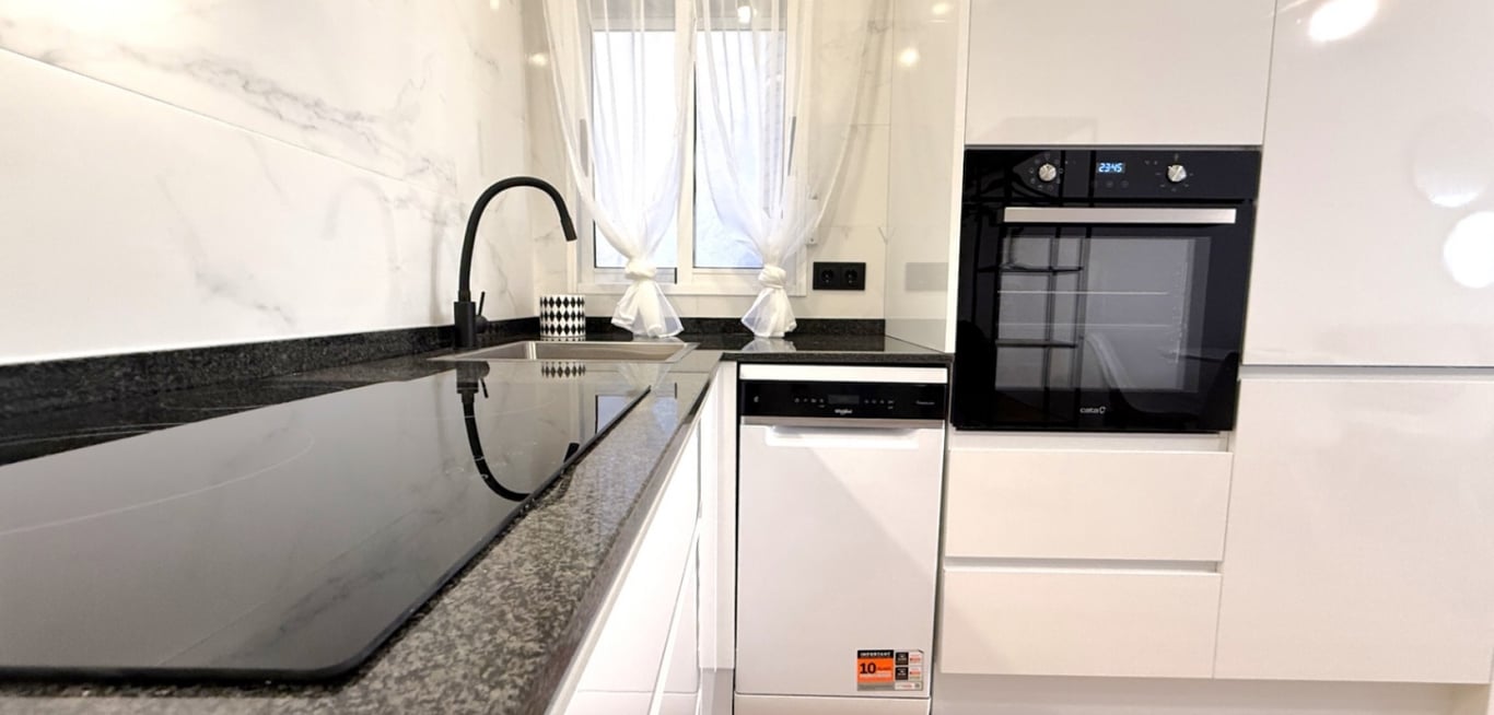 Discover this beautifully fully refurbished 2-bedroom, 1-bathroom apartment located on Calle Villa Madrid, Torrevieja, just a short walk from the city center and the vibrant marina. Recently renovated from top to bottom, this modern home combines comfort, style, and convenience. The apartment features a bright and spacious open-plan living area with updated flooring, fresh paint, and contemporary finishes throughout. The newly fitted kitchen includes sleek cabinetry and modern appliances, per...