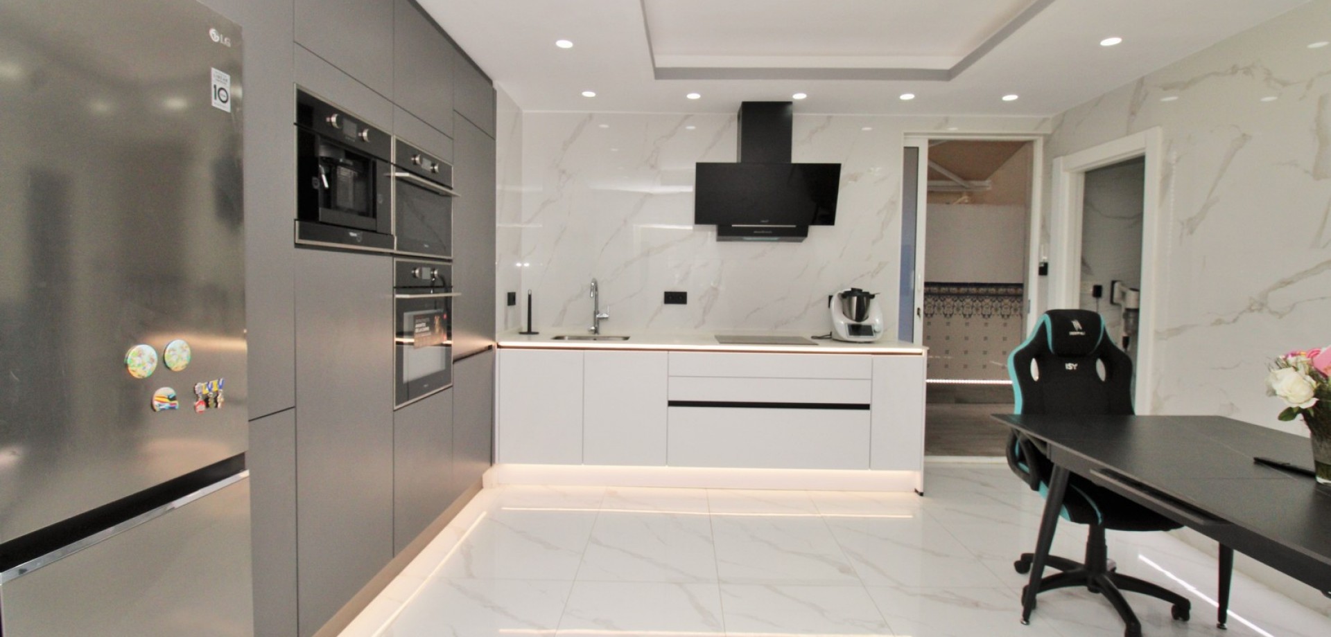 Situated within the gated community of Papi Vera in the heart of Torrevieja, this fully renovated ground floor apartment offers an exceptional combination of modern design, generous living space, and a prime central location, all within walking distance to everyday amenities and the coast. The property has been completely refurbished to a high standard throughout, with every detail carefully updated, including a brand-new kitchen, modern bathrooms, new flooring, internal doors, fitted wardrobes...