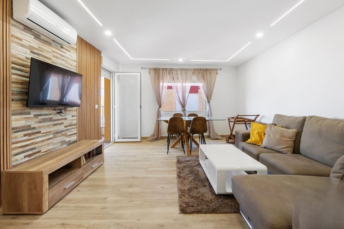 Superb OFFER! 1-st Line Modernized South Facing Apartment in Torrvieja Apartment in Piscinas naturales, with 110 m2 built, 90 m2 living area, 3 bedrooms, 2 bathrooms, reformed, outward, floor 4, 1 terraces, 10 m2 of terrace, kitchen american kitchen, storage room, elevator, furnished, orientation south 110 m2 built 90 m2 living area 3 bedrooms 2 bathrooms Reformed Outward Floor 4 1 terraces 10 m2 of terrace Kitchen american kitchen Furnished Orientation south Elevator Storage room Views: sea