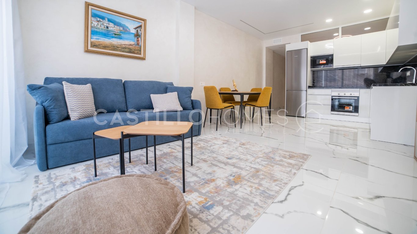 Renovated apartment 100 meters from Playa del Cura – Torrevieja Unique opportunity just one block from the beach! For sale: beautifully renovated 70 m2 apartment located just steps from Playa del Cura, in one of Torrevieja’s most sought-after areas. The property offers 2 spacious bedrooms, 2 modern bathrooms with underfloor heating, a large and bright living room, and a cozy terrace ideal for outdoor relaxation. The apartment is tastefully renovated and comes fully furnished, ready to move in....