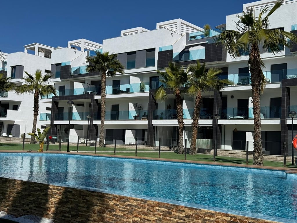 SOUTH FACING 2 Bedroom 2 bathroom top floor apartment overlooking the communal pool with private solarium, terrace and garage space located in El Raso, Guardamar del Segura.