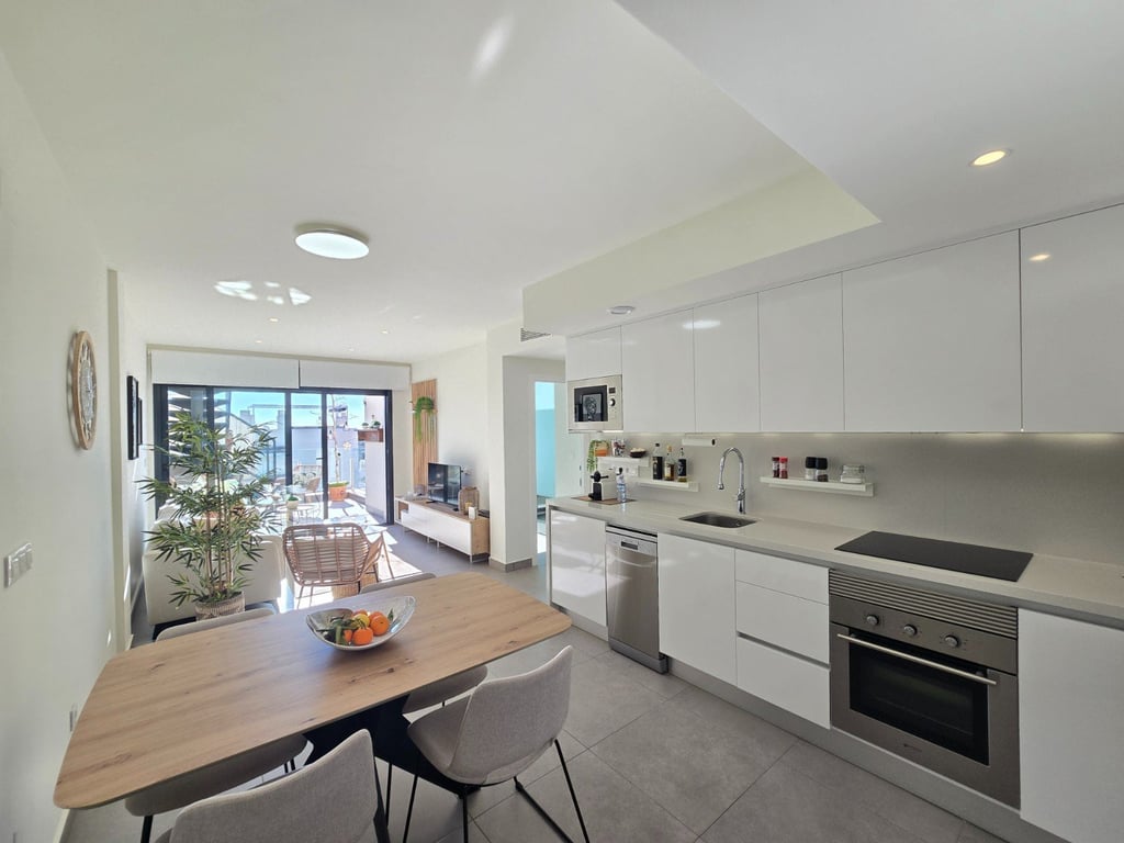 Discover this exceptional south-facing penthouse with breathtaking sea and mountain views, located in a young and perfectly maintained urbanisation near the Gulf of Villamartin. The absolute showpiece is the spacious solarium, equipped with a fully fitted outdoor kitchen, a dining and lounge area, and sun terraces where you can enjoy light, tranquillity, and panoramic views throughout the day. Inside, a bright and spacious living area with an open-plan kitchen welcomes you into a modern, invit...