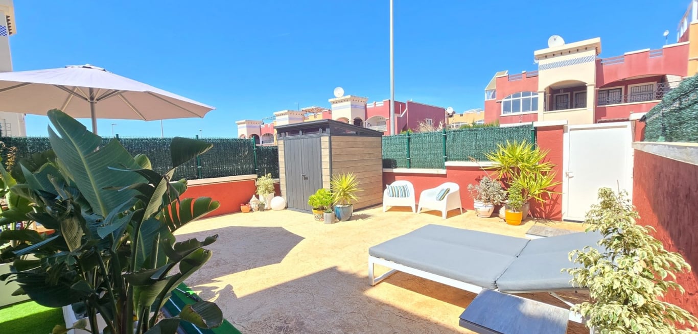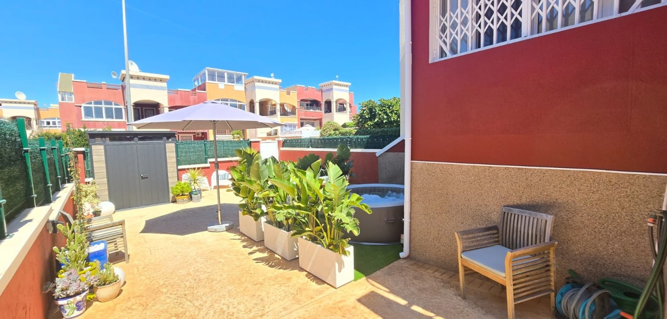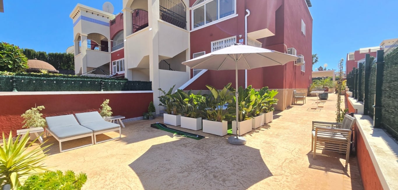 Charming ground-floor flat in excellent condition, ideal for those seeking comfort and outdoor space. Located in the popular Orihuela Costa – Los Altos, with a selection of bars, restaurants and shops within walking distance. This cosy apartment features 2 bedrooms and 2 bathrooms, one of which has been practically converted into a handy utility room. The light-filled living area with open-plan kitchen creates a pleasant and modern living experience. With a living area of 72 m2, the layout h...