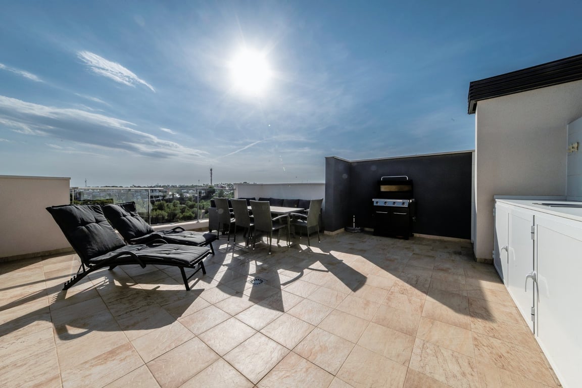 Modern Penthouse for Sale – Exclusive Spa Complex in Green Hills Welcome to this elegant penthouse offering three spacious bedrooms with a total of 6 beds, two modern bathrooms, an open-plan living room and kitchen, a sunny balcony, and an impressive private rooftop terrace of about 50 m2. Perfect for sunny days and cozy evenings. The apartment is part of the prestigious Green Hills complex, offering first-class amenities. Enjoy a 5-star spa with a heated indoor pool, two outdoor pools, a saun...