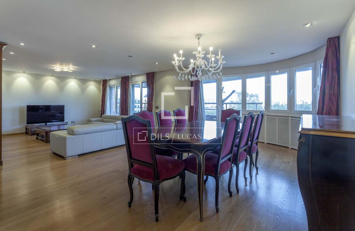 Lucas Fox presents this fully furnished and renovated property , facing the Jardines del Río Turia in Valencia and with a wonderful orientation. Upon entering, we are welcomed by a comfortable entrance hall that leads to the spacious living-dining room with a fantastic terrace of approximately 6 m2. The dining room has Climalit glass windows and the living room area with Roche Bobois furniture, gas heating and independent air conditioning. Due to its orientation it enjoys natural light through...