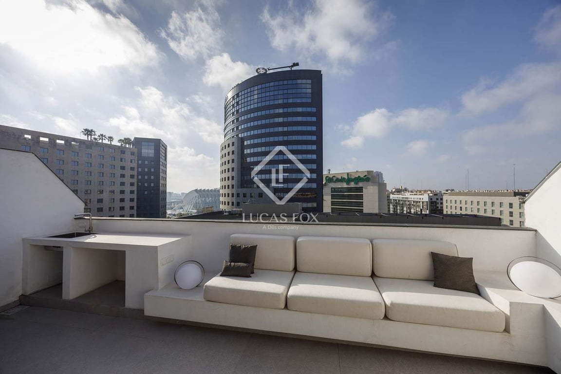 Lucas Fox presents this sophisticatedly renovation penthouse in the City of Sciences, one of the most coveted areas of Valencia. The property is spread over two floors with elevator access to both. On the ground floor, there is a living room and a high-quality kitchen with an island, which can be separated if desired, and a comfortable balcony. There is also a bedroom and a full bathroom . Upstairs, there are two double bedrooms, one with a private bathroom, as well as a second full bathroom...