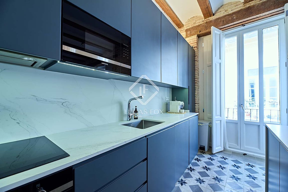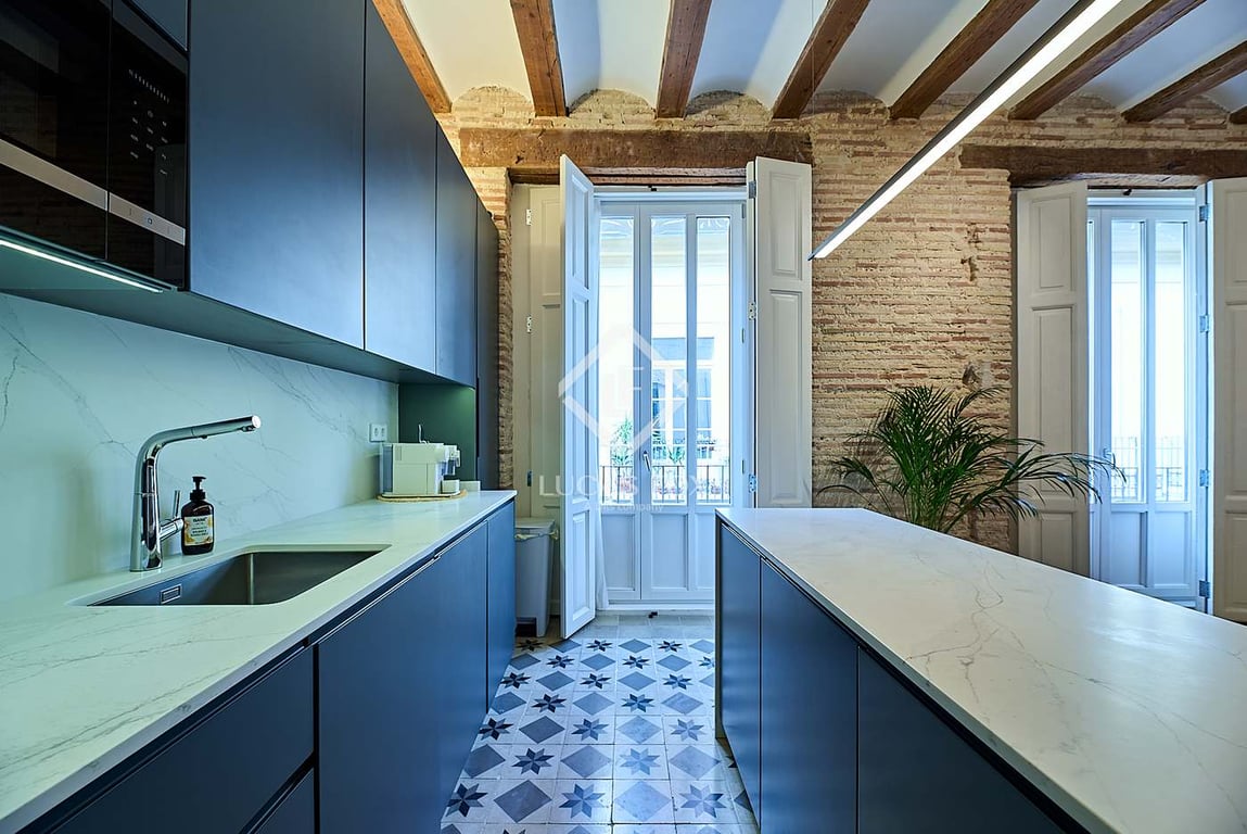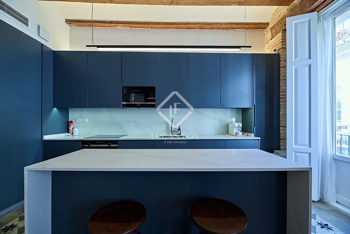Lucas Fox presents this unique apartment for sale near Valencia's Central Market. It is located on a quiet street very close to the old town centre , where La Lonja de Valencia, the Central Market, and Town Hall Square are located. Located in a beautiful building constructed in 2021, the house occupies the entire floor below the floor . The building features high ceilings and a stately entrance hall. With no neighbors, it's a very quiet and private property . The property currently has two b...