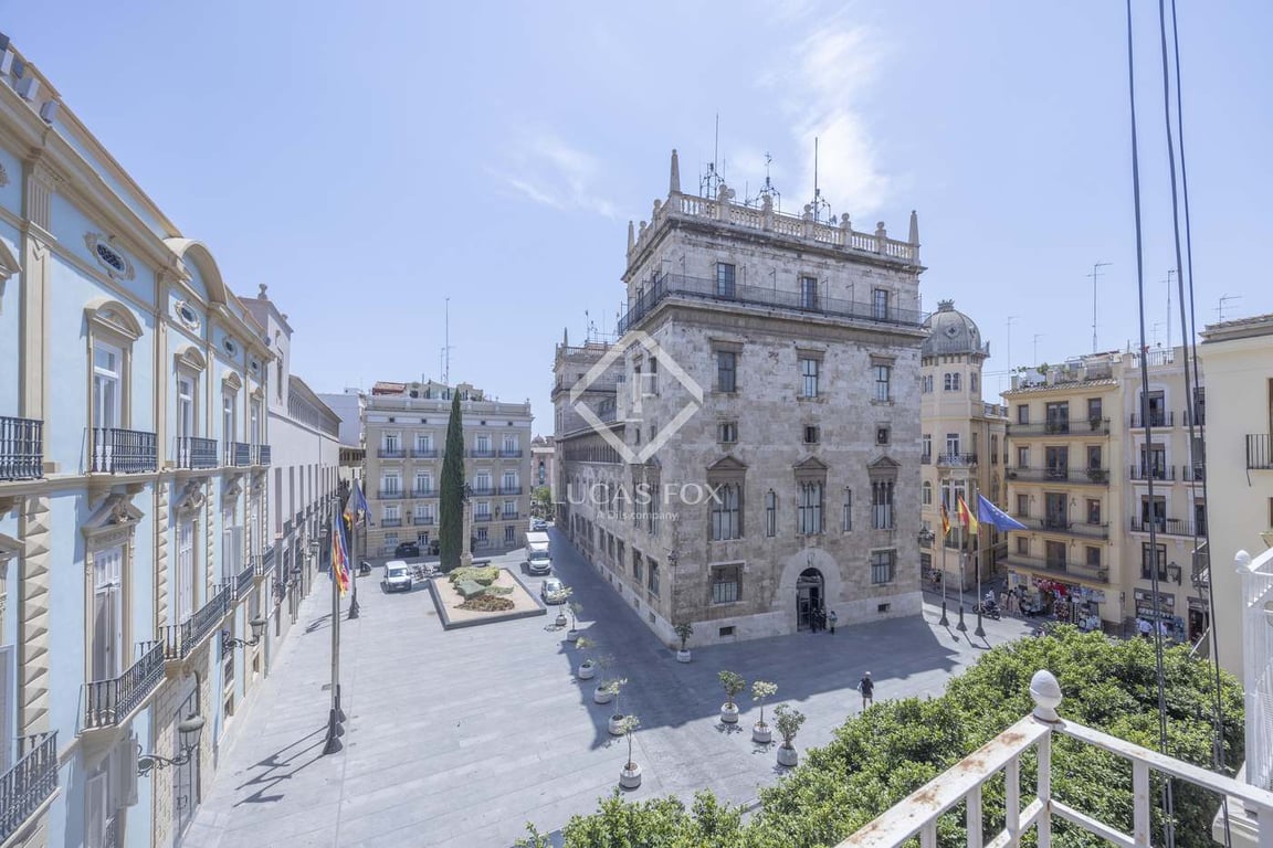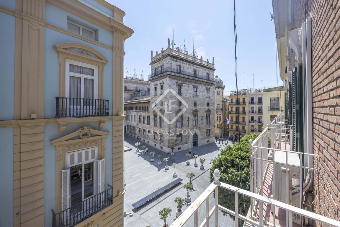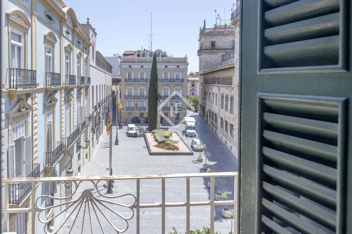 Lucas Fox presents this exclusive apartment with a privileged location, right in front of the majestic Plaza de Manises, with direct views of the Generalitat Valenciana (Valencian Government). Thanks to its four exterior balconies, the property enjoys exceptional light and unbeatable views of the city's charming old town. The apartment is located on the second floor of a stately 1955 building with an elevator. It retains the character of the period, with high ceilings, spacious rooms, and arch...