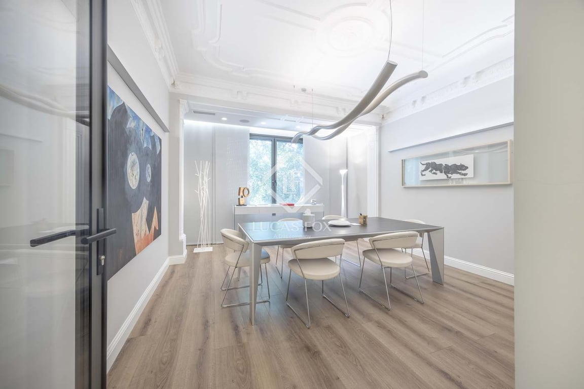 This magnificent apartment is located in a period building with an elegant and well-maintained façade in one of the most coveted areas of Pla del Remei, Valencia. The property has a built area of 216 m2 according to the land registry and is currently configured as a professional study , although its versatile layout allows for easy conversion into a high-end private property . Thanks to its orientation and height, the property enjoys exceptional views: from the main facade, you can admire a ...