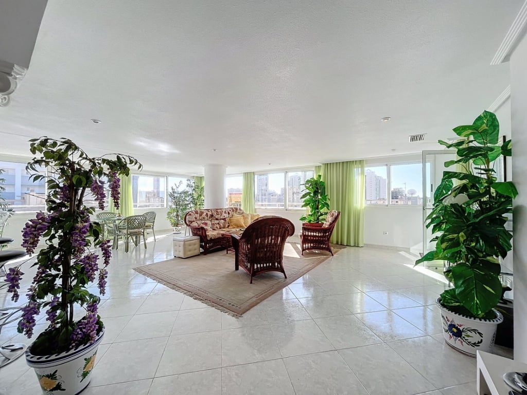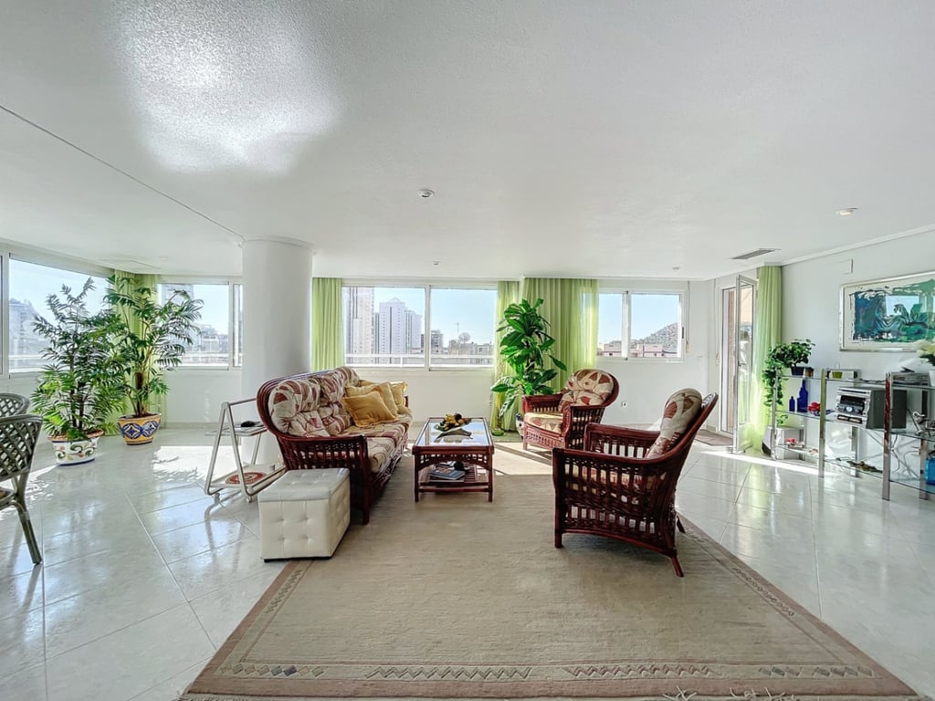 Unique corner penthouse in La Cala de Villajoyosa. From the entrance hall, with storage room, there is direct access to the kitchen and the huge livingdining room. The living room is connected to the two terraces, one covered and the other uncovered. The bedrooms, one with an ensuite bathroom, and the other bathroom, are located in a wing of the floor. The bedrooms also have direct access to the terrace. The apartment is located 5 minutes walk from the beach. Supermarkets, shops and restaurants...