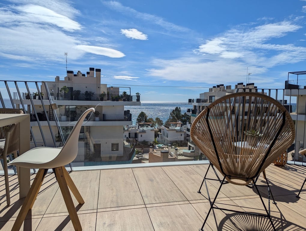 Your Dream Home Awaits! Experience the epitome of luxury and comfort at Allonbay Village, nestled in the heart of the Costa Blanca. This stunning two-story penthouse, located in the picturesque town of Villajoyosa, offers breathtaking panoramic views of the Mediterranean Sea. Just 50 meters from the beach, this home is an oasis of tranquility and sophistication. A Unique Lifestyle Situated on the sixth and top floor, this penthouse boasts spacious and bright interiors designed for maxim...