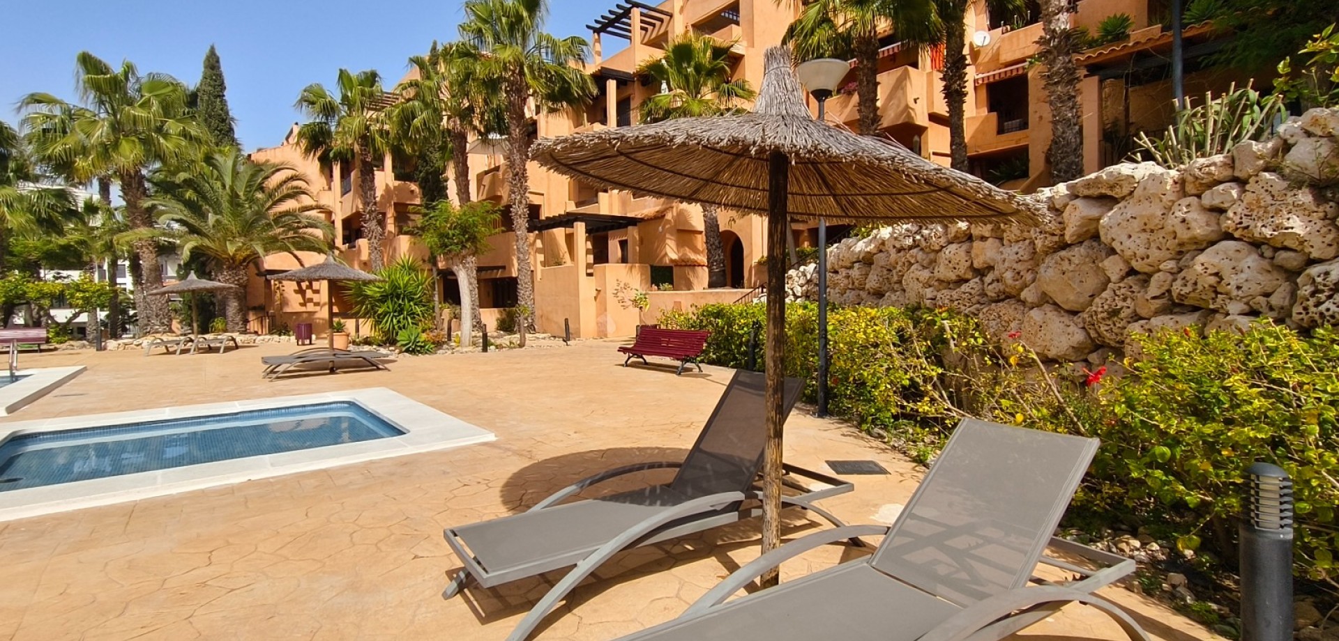 In Orihuela Costa, just a stone’s throw from Villamartín Golf Course, discover this south-facing ground-floor flat within a secure complex featuring a communal swimming pool. The flat, sold fully furnished, comprises two bedrooms, two bathrooms, central air conditioning, and two terraces, the main one of which faces south. The property also includes white goods, a parking space and a basement storage room. Don’t miss this rare opportunity, ideal as a main residence or a sunny holiday home. Conta...
