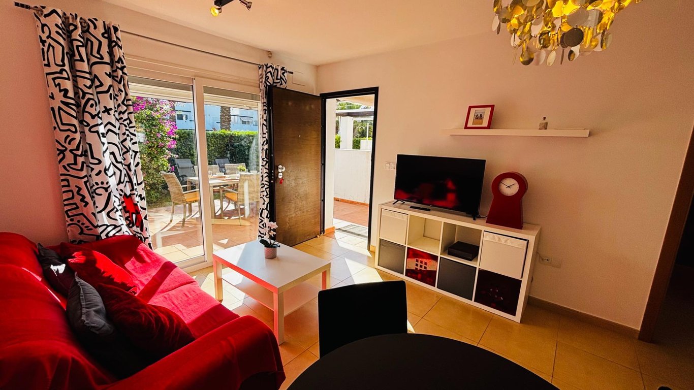Quality Homes presents this beautiful ground floor property located in jardin 12, with a fantastic view onto the communal pool and garden.~~The home boasts an East-West orientation, offering morning sun at the front and afternoon sun at the back — perfect for families who enjoy a bit of both.~This fully furnished and equipped property is key-ready and sold as seen.~The apartment features three bedrooms, each furnished with beds, bedside tables, and built-in wardrobes. The master bedroom enjoys t...