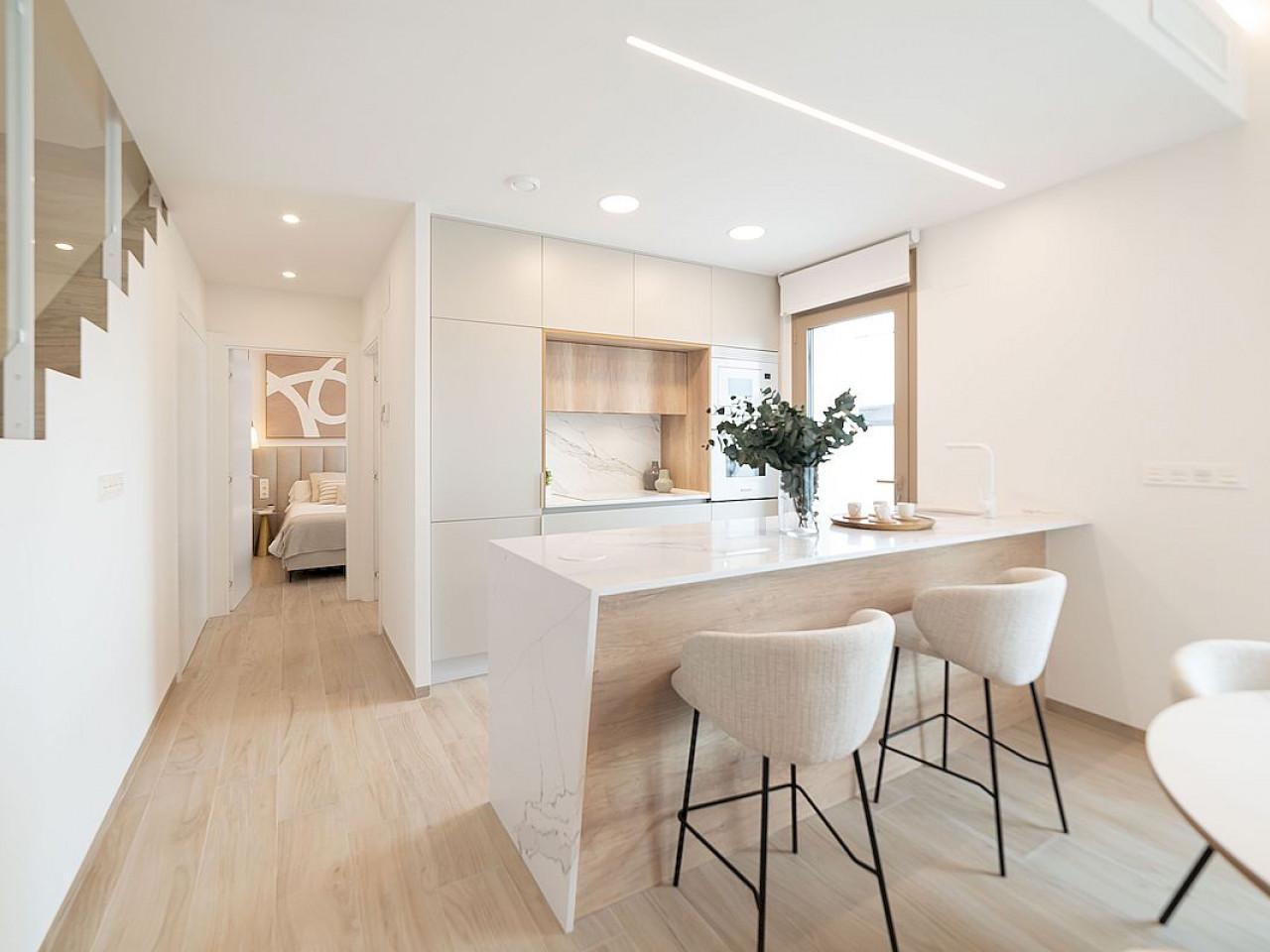 These new build modern and contemporary semi-detached villas located in the Lo Marabú area of Ciudad Quesada. This distinguished residential development is made up of several blocks of semi-detached villas, with three bedrooms and two bathrooms and with three bedrooms and three bathrooms. These modern properties, distributed over two floors, consisting on 3 bedrooms with fitted wardrobes, 2 bathrooms, guest toilet, open plan kitchen with the lounge area, solarium with summer kitchen and ga...