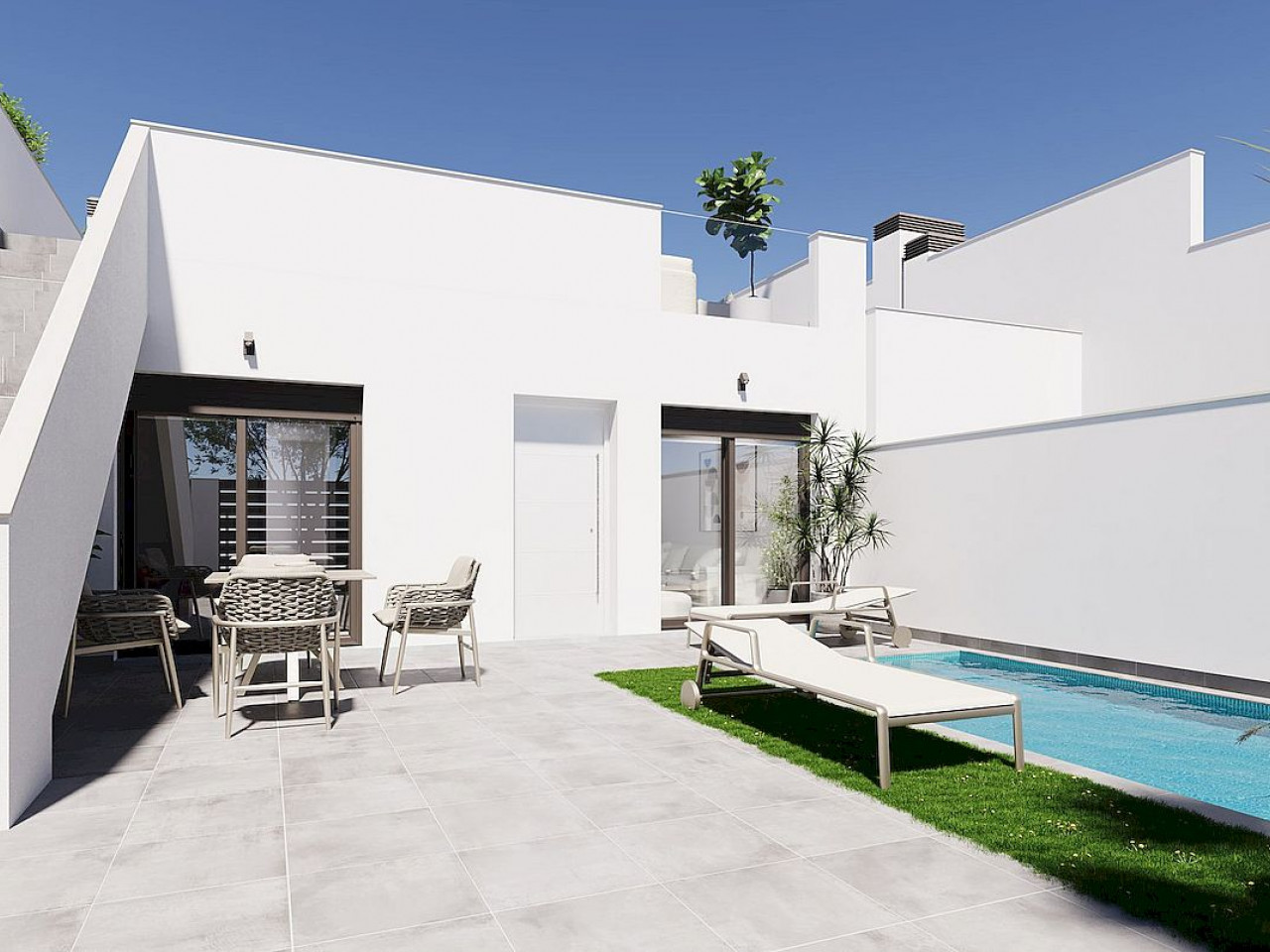 New exclusive development of modern single-storey semi-detached and terraced villas with solarium and private pool located within the exclusive El Alba complex in Roldán (Murcia). The Chalets with 2 bedrooms and 2 bathrooms are an open plan design with the master bedroom having en-suite, also great outdoor space with large garden with ample private swimming pool, solarium with summer kitchen and parking area on the plot. All properties have fully fitted kitchens including white goods and pre-...
