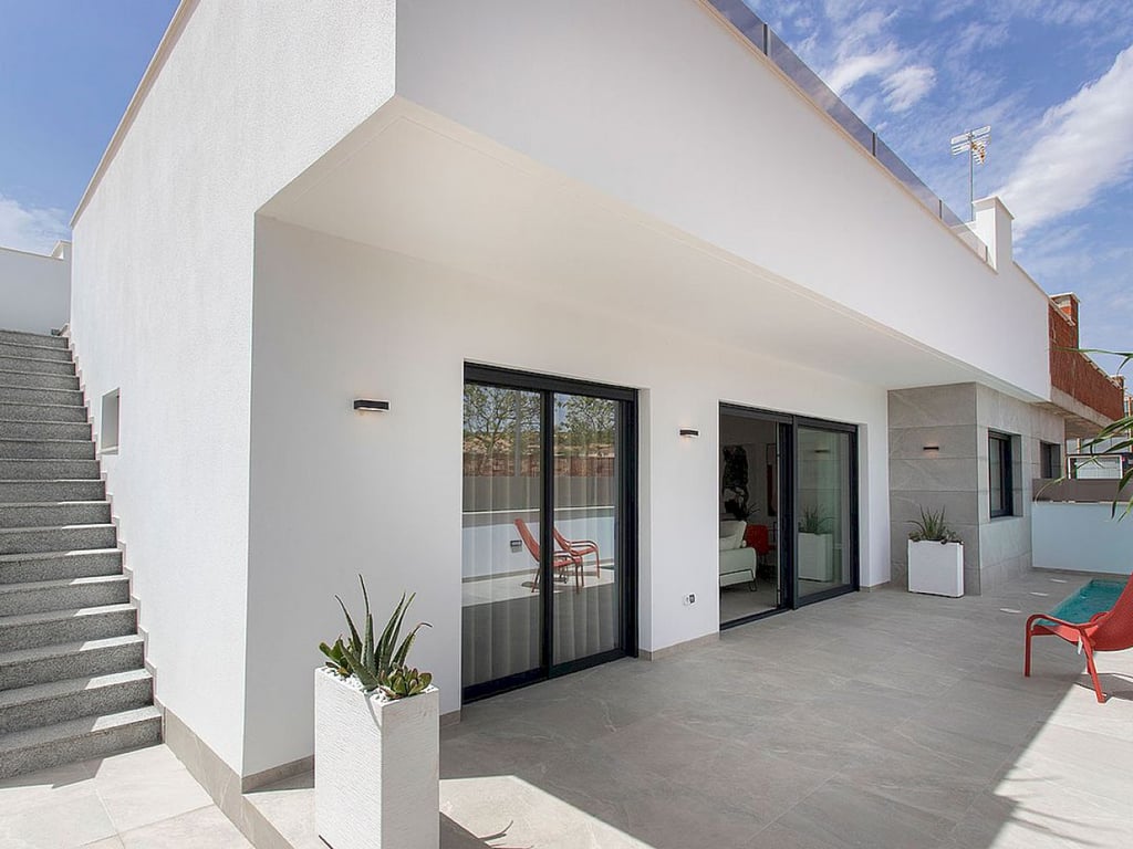 Casas Kinita is a contemporary style semi-detached villa, on one level with 3 bedrooms and 2 bathrooms with solarium and private swimming pool. This villa has three bedrooms, two bathrooms and a charming outdoor toilet to service the pool area. The master bedroom is very bright, with en suite bathroom, dressing room and direct access to the main terrace of the house, where the swimming pool is located. The living-dining room joins the porch and the pool terrace, creating a single space, with ...