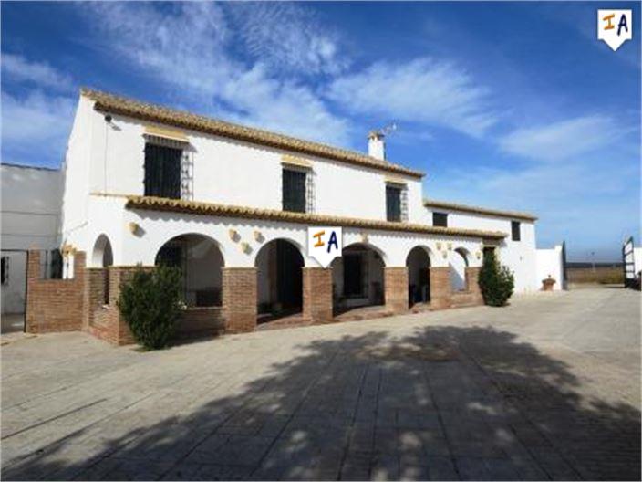 This is an amazing opportunity to purchase a traditional cortijo in the heart of Andalucia, located just a short 5 minute drive from historical Antequera and sitting within a plot of over 130,000m2 of land which consists of stables, paddocks and land which is currently being cultivated for asparagus. The grounds also offer a private swimming pool area, large garage with storage room , 10 interior stables and a large nave which is linked to open paddocks allowing for horses to graze inside or out...