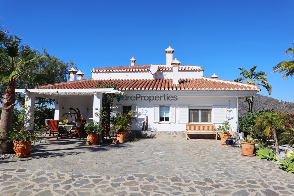Four independent comfortable living units on a 7,500 m2 plot of land with a paved lane inside. Located in Sayalonga (Eastern Costa del Sol), a few minutes by car from the beach, it is ideal for hosting your guests, or for dedicating part of the property to tourist rentals. Built with great skill and using proven quality materials, all homes have underfloor heating. The MAINE HOUSE has a porch with a garden table next to the entrance door. Inside there is a dressing room with, to the right, a to...