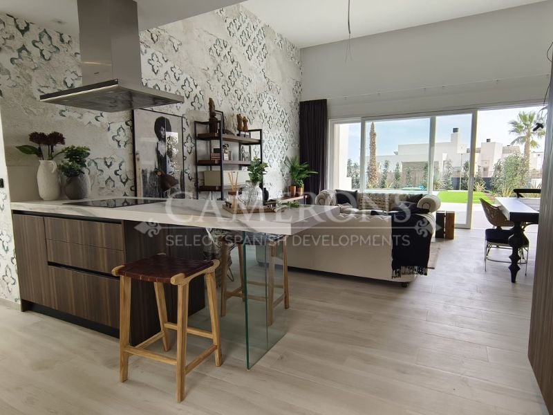 New Project of One level villas in La Finca Golf, an exclusive residential area of Algorfa. The internationally renowned resort has a magnificent Club House, as well as a commercial centre with pharmacy, shops and restaurants, and a 5 star Hotel and Spa. The beautiful sand beaches of Guardamar are only 15 minutes away by car. The area is well connected with the main cities, Alicante, Torrevieja and Orihuela Coast. Andros one level villas with 3 bedrooms and 2 bathrooms, have also a big plot from...
