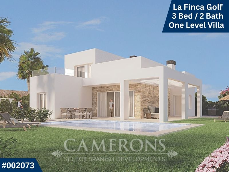 New Project of detached villas in La Finca Golf, with different models to choose. Syros villa is a very comfortable one level villa, one of the biggest boasting 3 bedrooms and 2 bathrooms in a generous plot size from 700m2 and including a huge 170m2 semibasement not finished, just to be customised according to your requirements.The villa includes an open plan lounge and kitchen, with a dining area. The double windows in the lounge open onto a terrace and pool area. These villas bring the focus ...